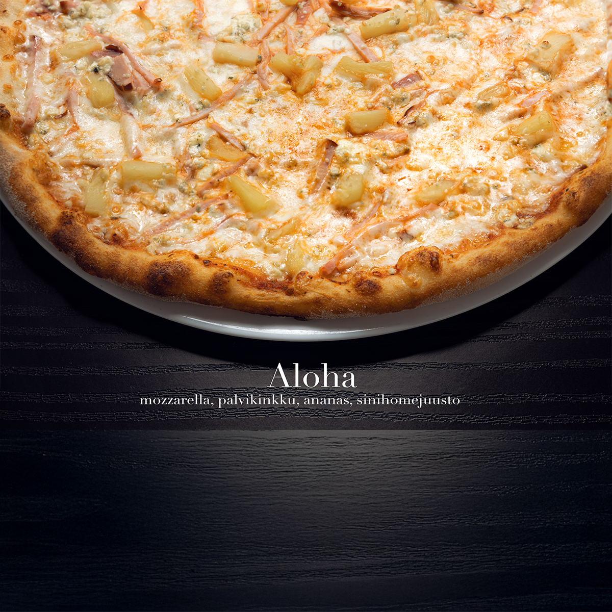 palvikinkku, ananas, sinihomejuusto